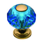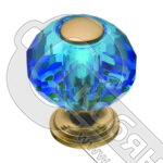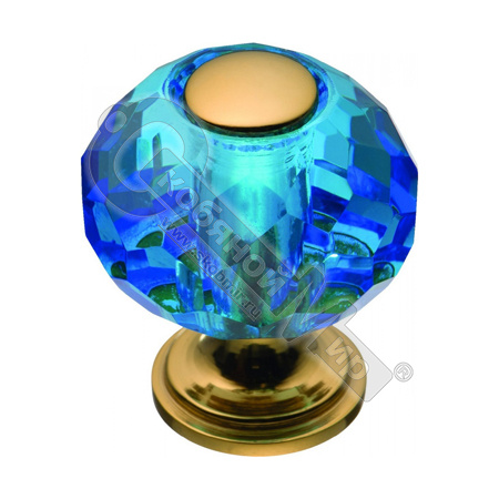 - Ручка кнопка латунь с голубым кристалом глянцевое золото, 0737-315-1-Blue