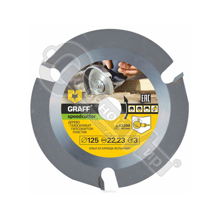 - Диск пильный по дереву 125х22,2 мм для УШМ, 3 зуба, GRAFF, Speedcutter125