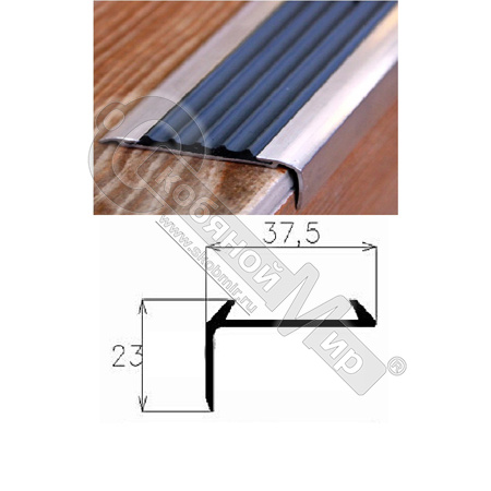 - Порог АЛ-259-С 1,8м противоскольз., Угол алюминевый с резиновой вставкой 37,5X23