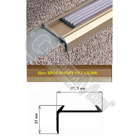 - Порог АЛ-259-С 0,9м бронзовый металлик, Угол алюминевый с резиновой вставкой 37,5X23